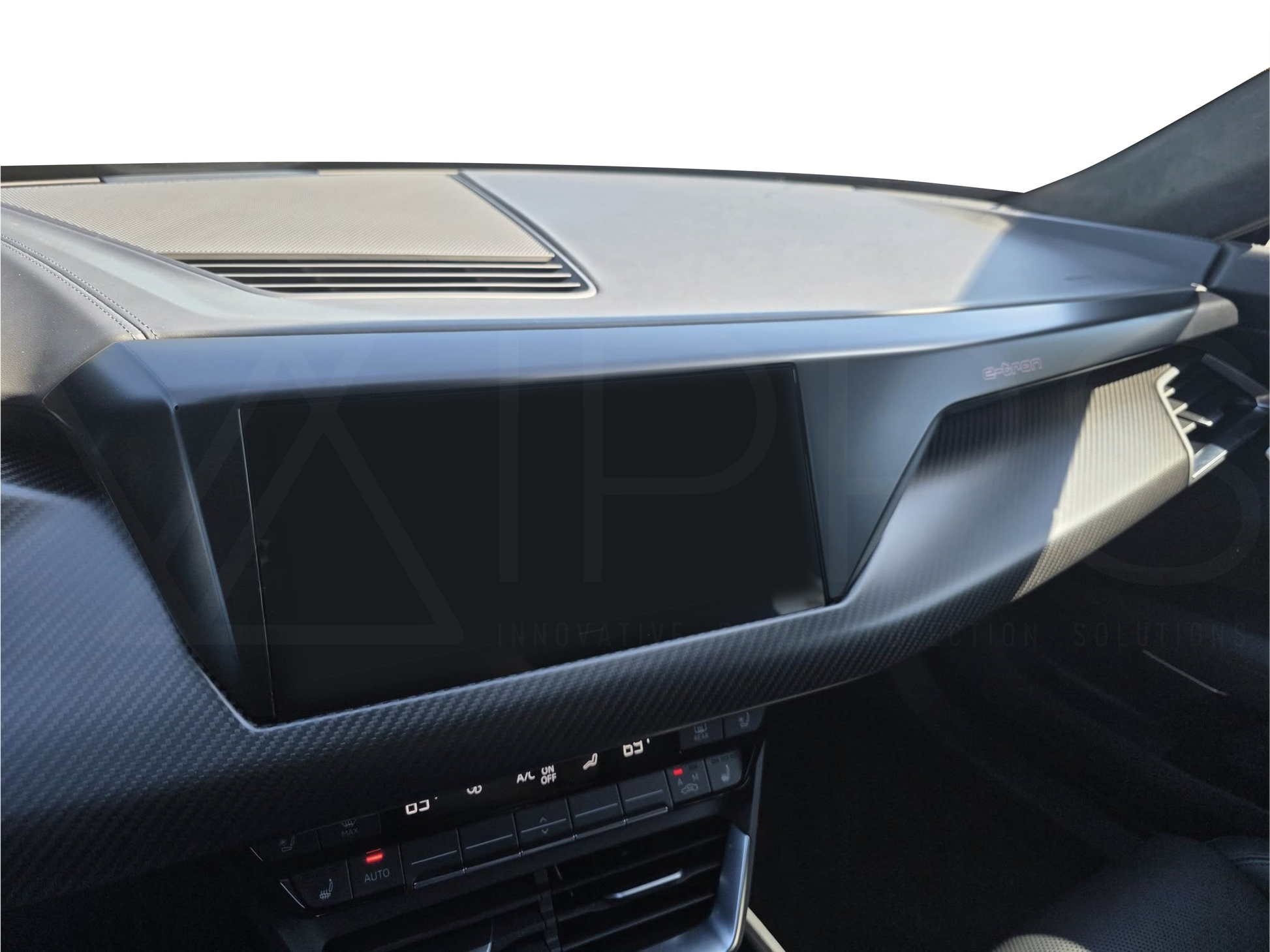 Developed and manufactured in-house, bespoke, Pre-cut Paint Protection Film Kit to protect the easily scratched high gloss black Audi E-Tron GT & RS E-Tron GT interior high gloss black centre console & dashboard trim.