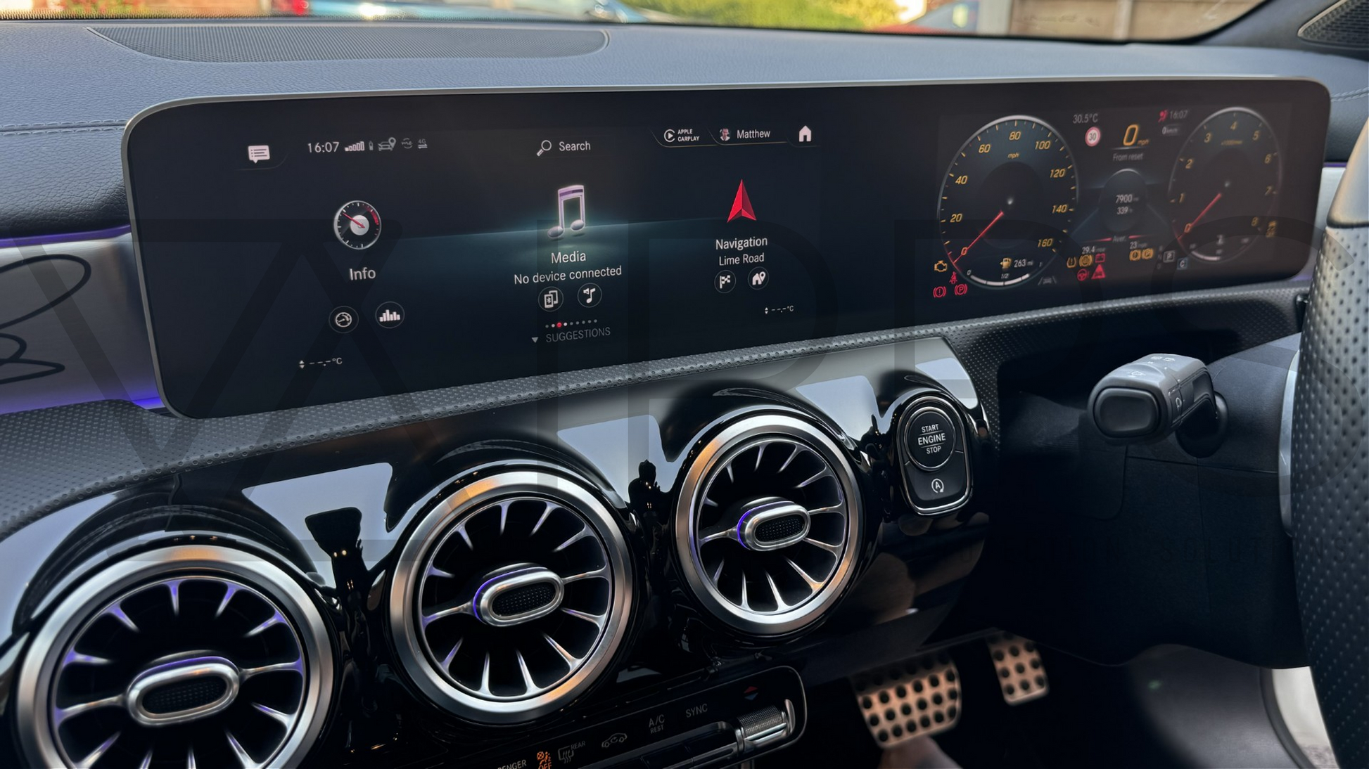 Developed and manufactured in house, bespoke, Pre-cut Paint Protection Film Kit to protect the easily scratched Mercedes MBUX instrument cluster / navigation screen.